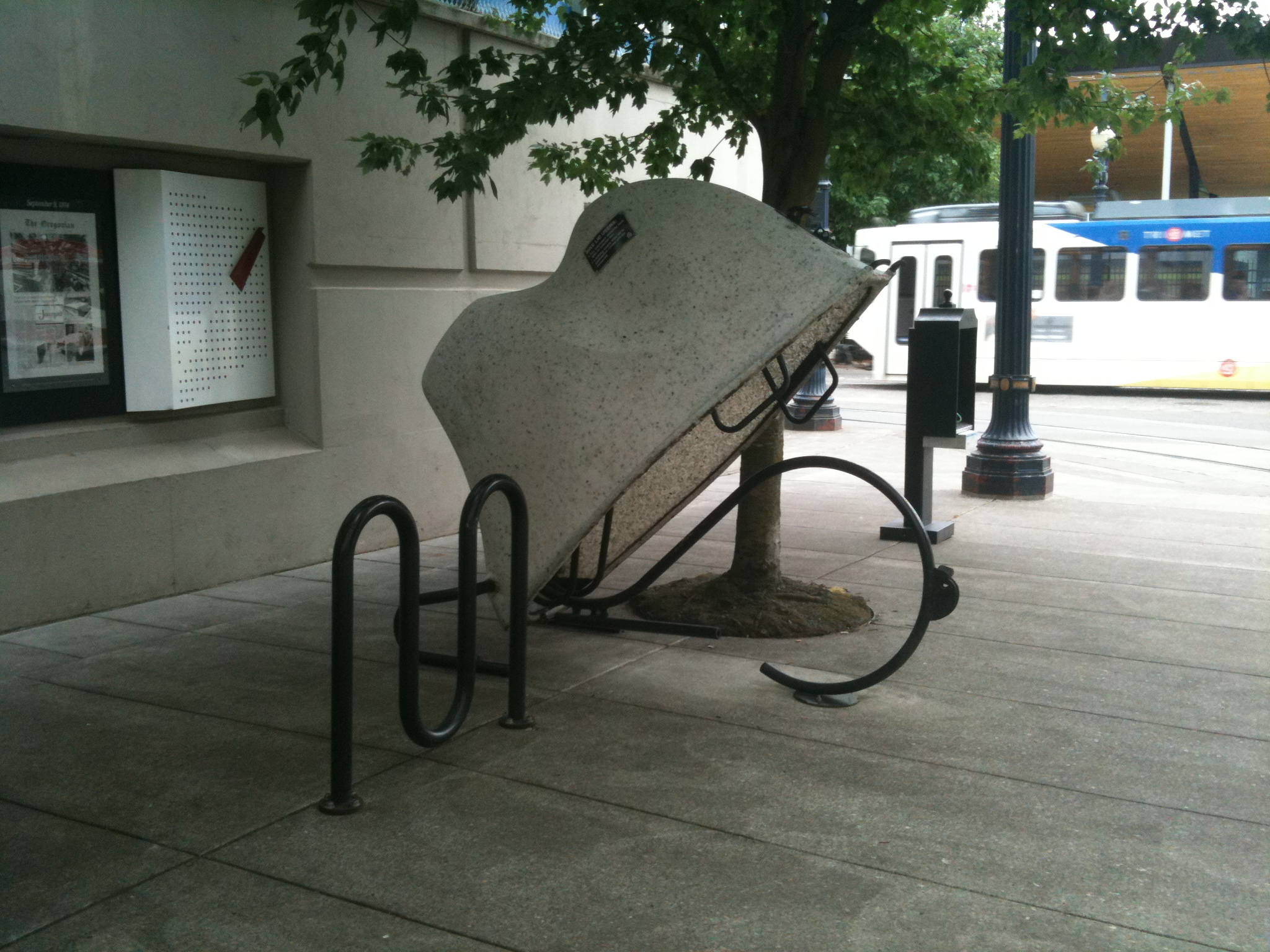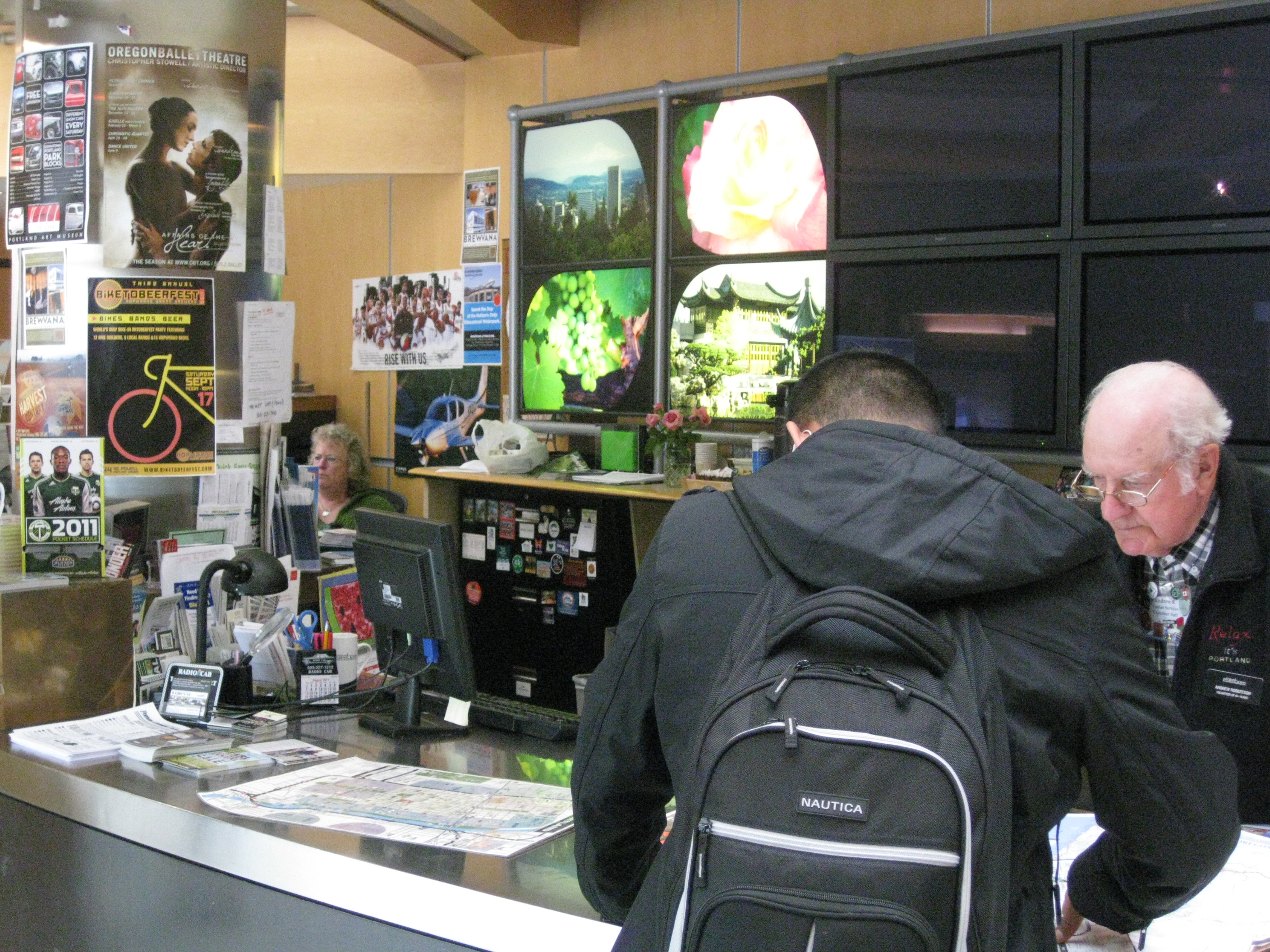 At the tourist information office in Pioneer Courthouse Square there was a man working on the desk who was from Ayreshire, Scotland. He said that he came to America in 1950 after he had left the army. He’d worked as a draughtsman for most of his life, but he said: “I’ve waited 50 years to get this job. I’m paid to tell people where to go!” He gave us a really useful (and free) cycling map of Oregon that might well help us as we travel down the Oregon coast. (And I can always threaten Garmin with the map, when it starts playing up). He also said “I hope that you don’t think I’m being presumptuous”, as he proffered us an ‘Out in Portland’ booklet. “Not at all.” I replied, “You’re being perceptive!” (Perceptive? Who do I think I’m kidding?!) He told us that his son is gay, which was very sweet of him.