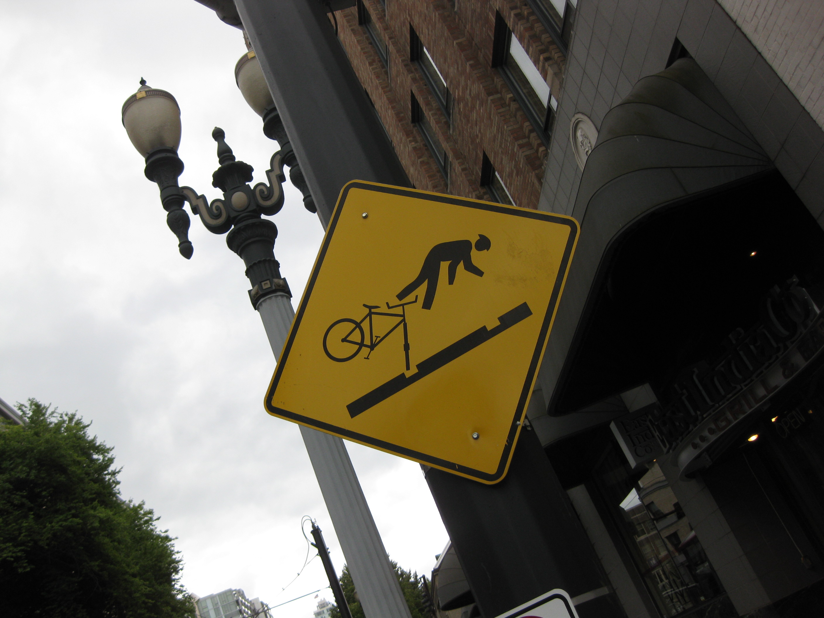 We struck up a conversation with one of the other waiting cyclists – a women with a lovely Specialized road racing bike – a matte black carbon bicycle with some nice understated pink accents, arching top tube, Sram groupset … all rather lovely. We chatted a bit about our respective rides and how to become a better rider, (we agreed: join a group to keep you competitive and practice). I wish that I’d taken her picture – she was very stylish in good-Lycra and also immaculately made up – wearing foundation, blusher, subtle pink lip gloss (obviously to match her Specialized road frame) along with pretty little pearl stud earrings. Now this is rather unusual in female road racing cyclists – at least it’s very uncommon back home; as for in Seattle – who knows? I wondered about asking her if I might take her picture to send to Copenhagen Cycling Chic, but was afraid that she might think that I was some kind of pervert! For those who don’t know, Copenhagen Cycling Chic is a superb website with photographs showing people looking stylish, nicely dressed and generally cool while on their bikes – and not just in Copenhagen, (although that place does seem to have something of a monopoly of beautiful people on bikes for some reason). She was a definite contender (and eventual winner) for the Most Stylish Cyclist of the Day award. Now before some people start commenting, I want to make it clear that I think that men can be stylish on bicycles too, (go and look at the site). In fact I think that I could be a worthy winner myself on some days, days when I’m riding my grey and orange Trek single speed and wearing black Rapha trousers, a cool t-shirt with a nice slogan on it: ‘love me, love my bike’ or ‘one less car’ for example; Camper shoes, a check cycling cap and a Crumpler messenger bag over my shoulder.