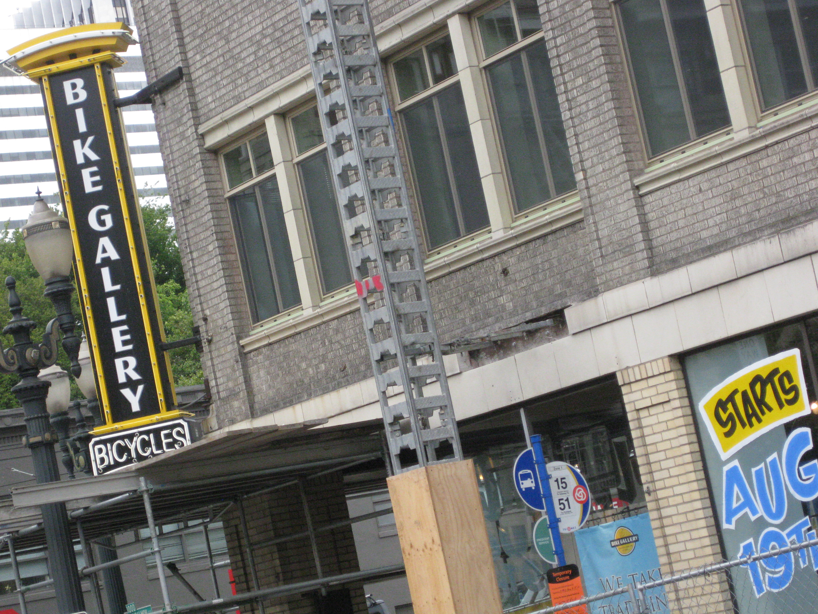 Marysville, Everett, along Evergreen Way (hardly any green!), east of Snohomish Airport, through Lynwood, (which had been our original destination for the day – but on reflection we thought that it wasn’t far enough south at about 60 miles from Mount Vernon), so we pressed on to Aurora on Pacific Highway, route 99. We turned west off this road just before N 155 Street towards the Seattle Golf and Country Club and the traffic seemed to almost disappear. We had a really enjoyable ride into the city, along Greenwood Ave North – into Greenwood; then on in to Phinney – a really nice-looking and slightly bohemian suburb – it felt a bit like home in Southville, Bristol. Joy of joys – we started to see people on bicycles! You can be pretty sure that you’re in a nice place with good people when the local people are on bicycles!
