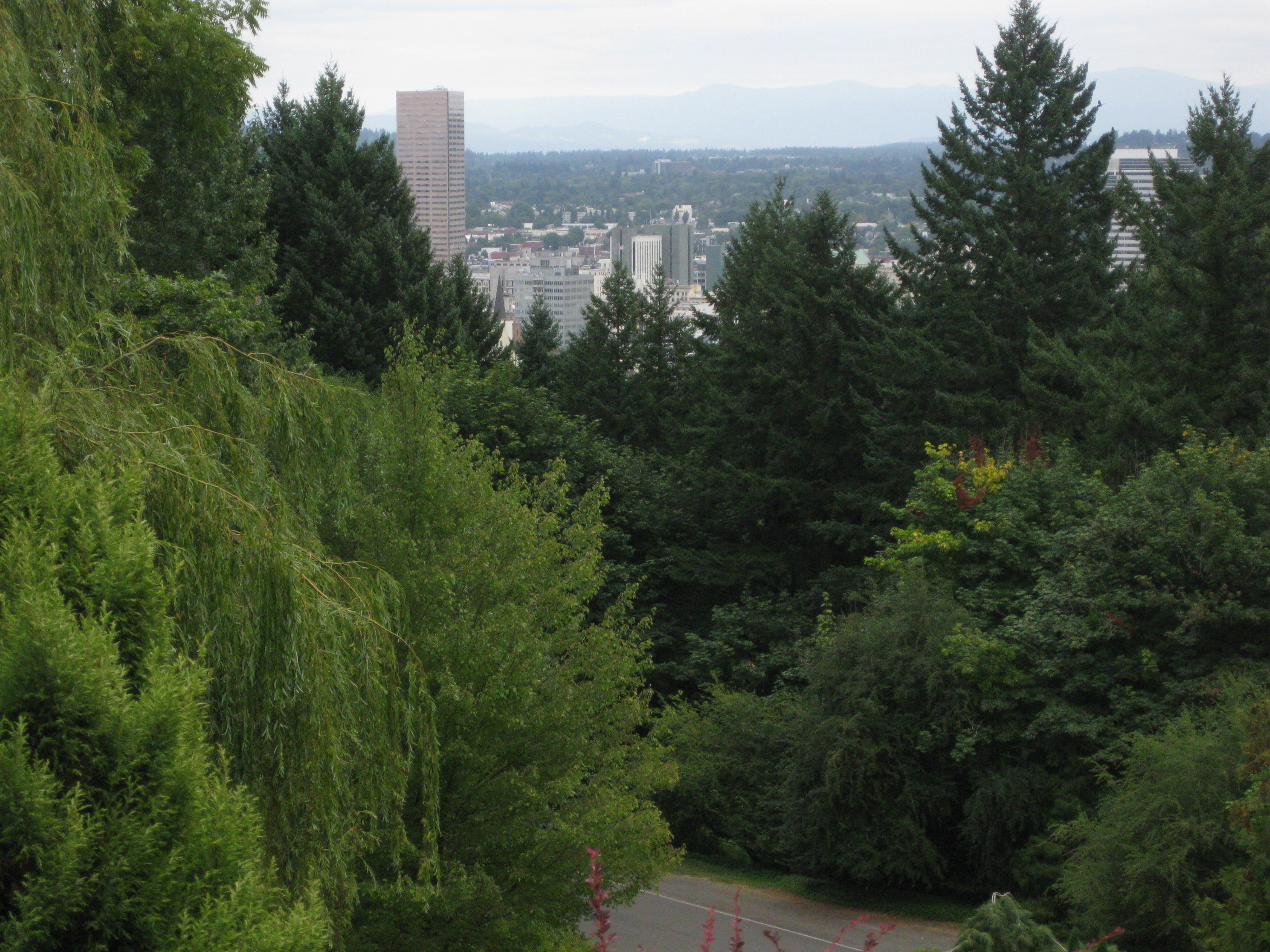 We made our way up to Washington Park, where there was a vast rose garden and a lovely Japanese garden – which is beautifully done and both much bigger than we expected. Roberto told us Portland’s climate is ideal for rose growing, so it’s famous for them. In the Japanese Garden the acers are looking wonderful and the colours must be really spectacular in the autumn. We bought a solar-powered Chinese lantern, that we thought might look good in Roberto’s garden. The park is high up and there lots of cyclists about, including Judy, who kindly offered to take our picture. She had a very nice-looking Trek road bicycle – we took her picture, too, and gave her our blog address so that she can prove to her friends that she was out riding uphill.