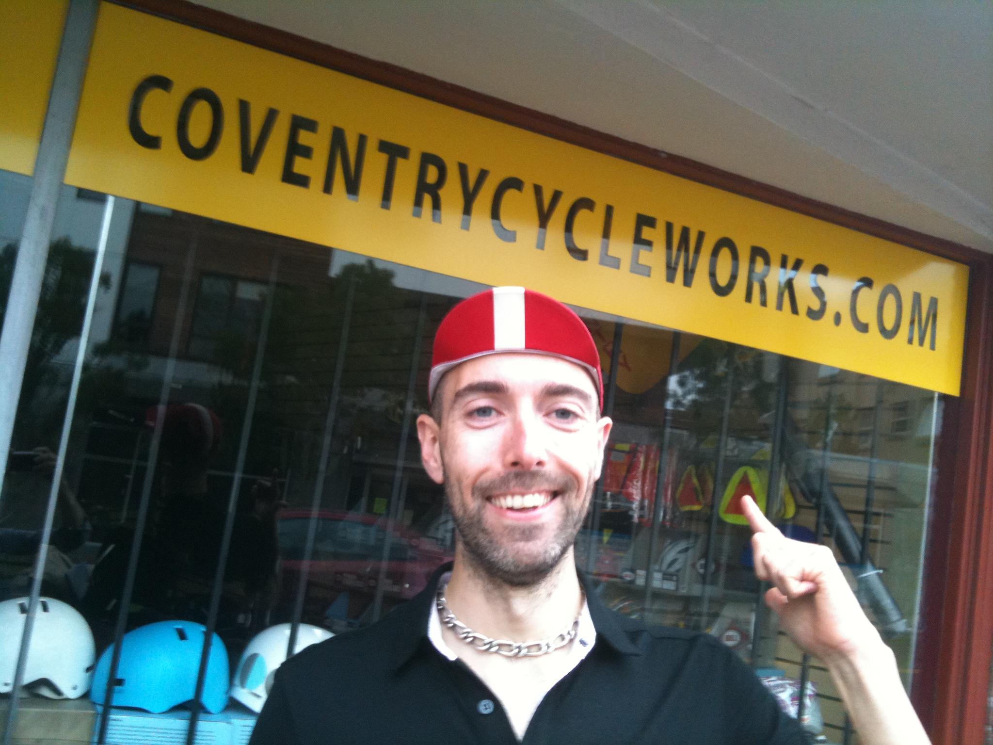 Finally, we saw that there a shop called Coventry Cycle Works. We couldn’t resist visiting as (a) Matthew is from Coventry and (b) Coventry Cycles are a famous old brand in the UK – sadly no longer being made. The shop had just closed when we arrived, but we took some pictures and could see through the windows that they specialised in recumbents.