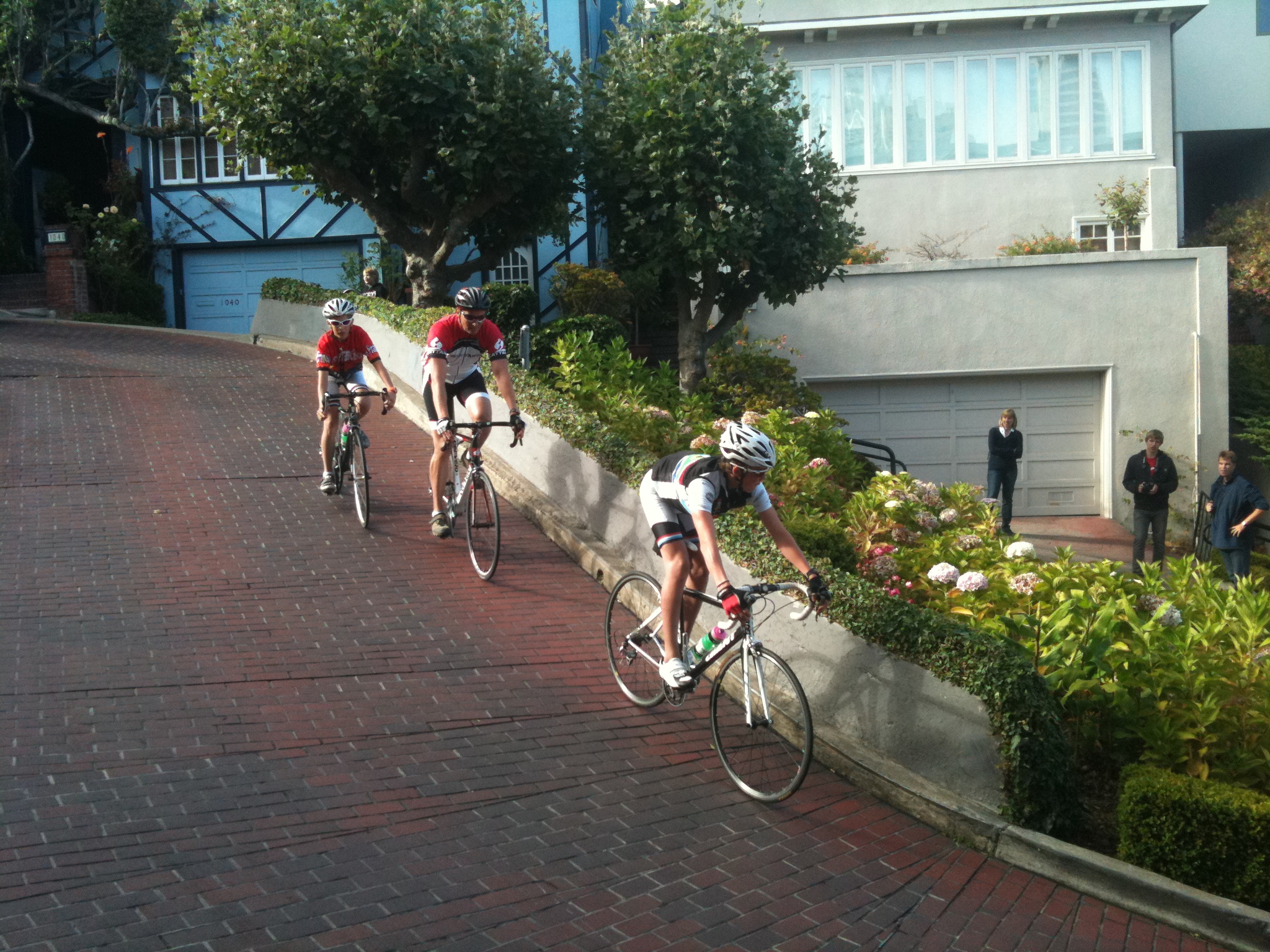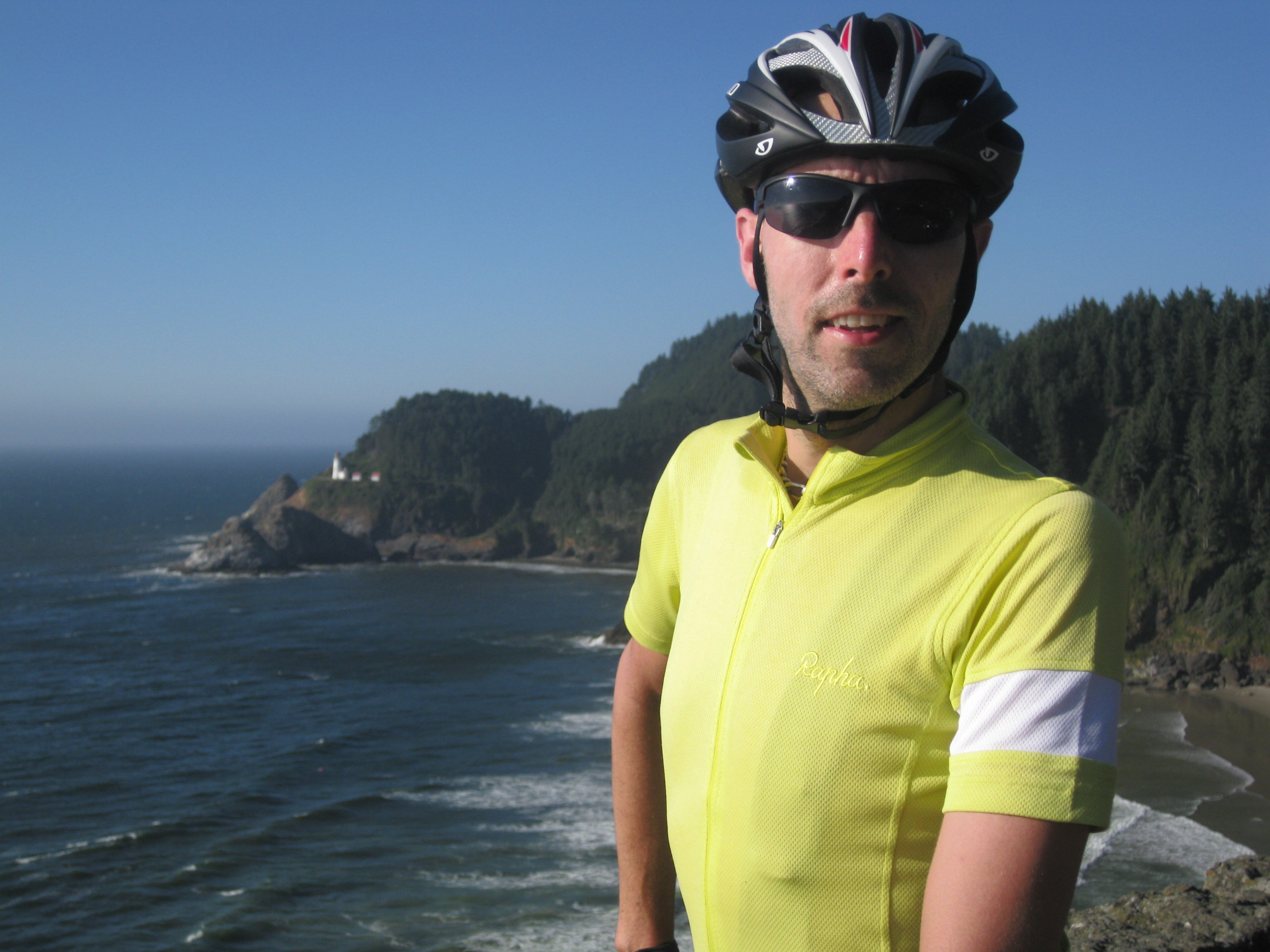 On the coast itself, a wide bicycle track took us south, along with dozens of other cyclists – most on Lycra, in groups doing their Friday morning exercises. It always inspires confidence to see lots of other riders out on the road. It obviously makes us all much more visible to motorists, so everyone just feels safer. Two young men rode alongside us for a while and complimented us on our jerseys – they said that we “looked cool” (*glow*), and wanted to know where our cycling kit came from. We told them about Rapha and they seemed quite excited about it being available in the USA – I thought that perhaps we should be on commission – or even sponsored, really. Although these two fellows might be a little less enthusiastic when they see how much Rapha gear costs!
