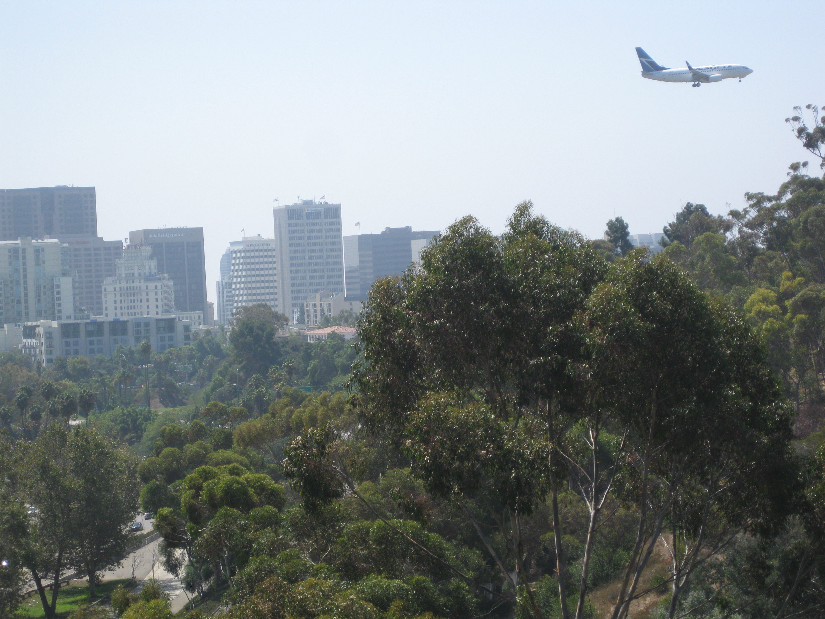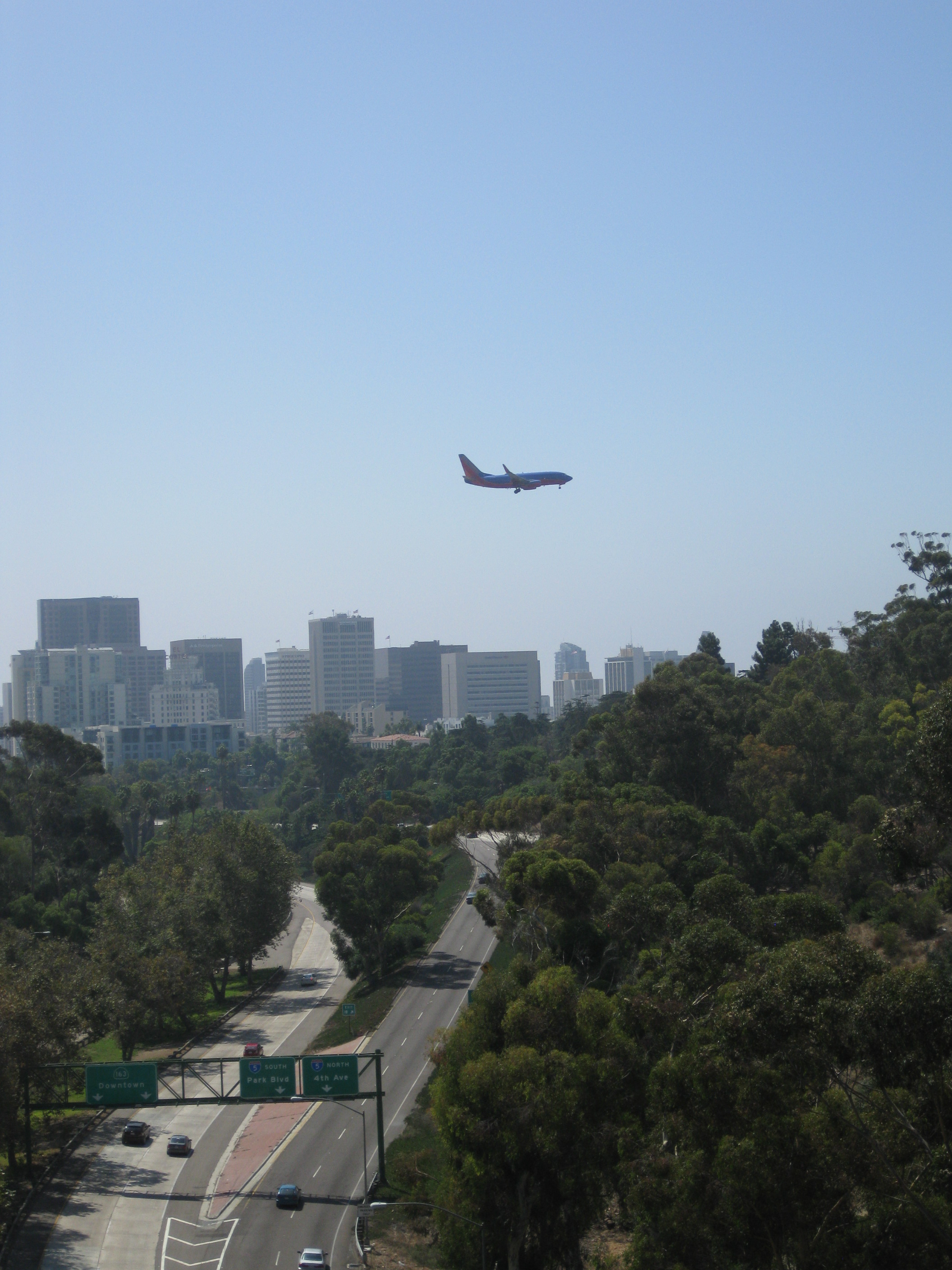 The Pacific Highway passed very close to the end of the runway and as we approached, we watched a plane make its descent and land – San Diego airport is notorious for having a short runway and for being so close to built-up parts of the city. Up close it was extraordinary how close to built-up areas and the road the aeroplanes are when they’re coming in. As the road drew closer to the end of the runway a plane passed low right above us on its way in to land. Huge! Loud!! Brilliant!!! I could have stood and watched several more, but watching planes wasn’t the purpose of the day and inexplicably, Matthew fails to be drawn to aeroplanes, (I do think that sometimes he’s not very adept at being a boy). I’ll get my chance to do some plane spotting when we’re at the airport on Monday I suppose.
