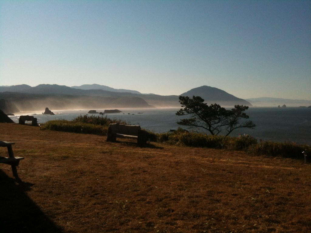 It was so tantalising, to be nearing the Pacific Ocean ‘proper’, (the areas further north, was the Pacific Ocean, of course – but it was interrupted by islands and promontories). This time we expected to get an uninterrupted view of the Pacific. And then we saw it. Just before Neskowin. Matthew has never been to the west coast of the USA or seen the Pacific Ocean. It’s incredible and huge and thousands of shades of blue and white – a white translucent mist hovered just above the water near the shore.