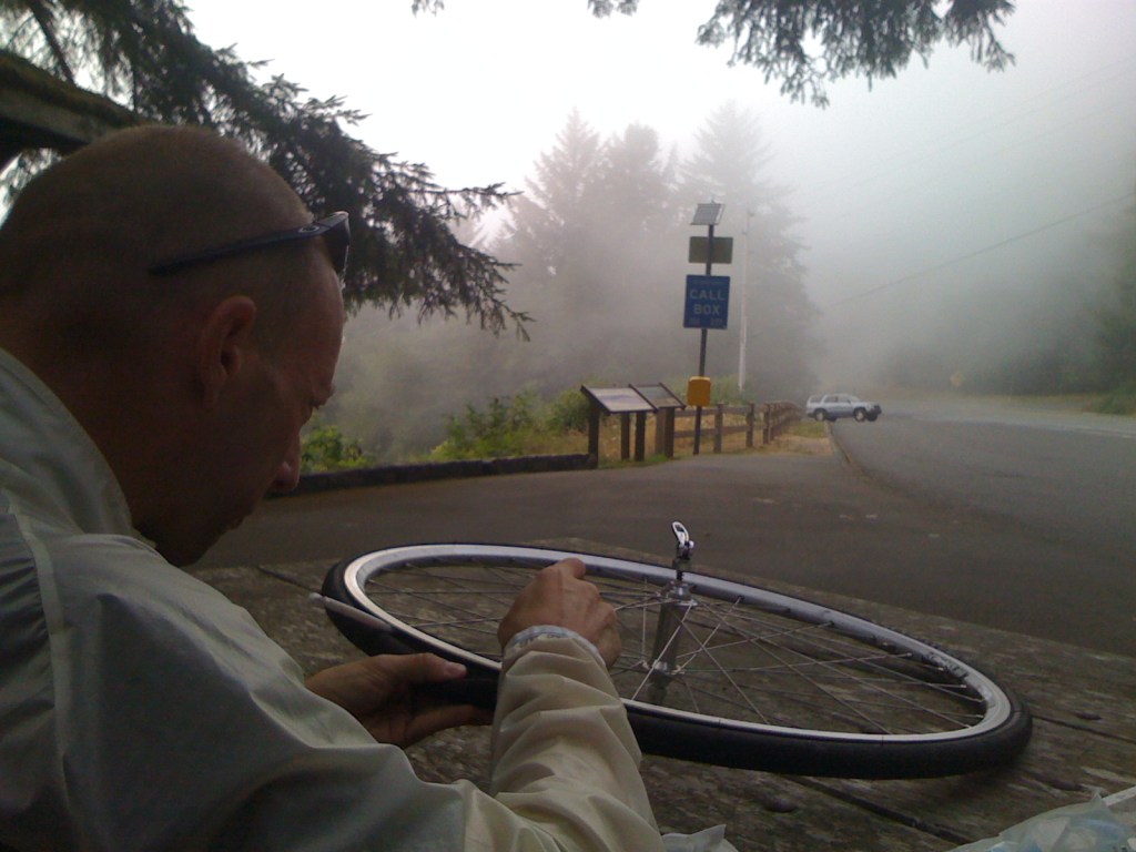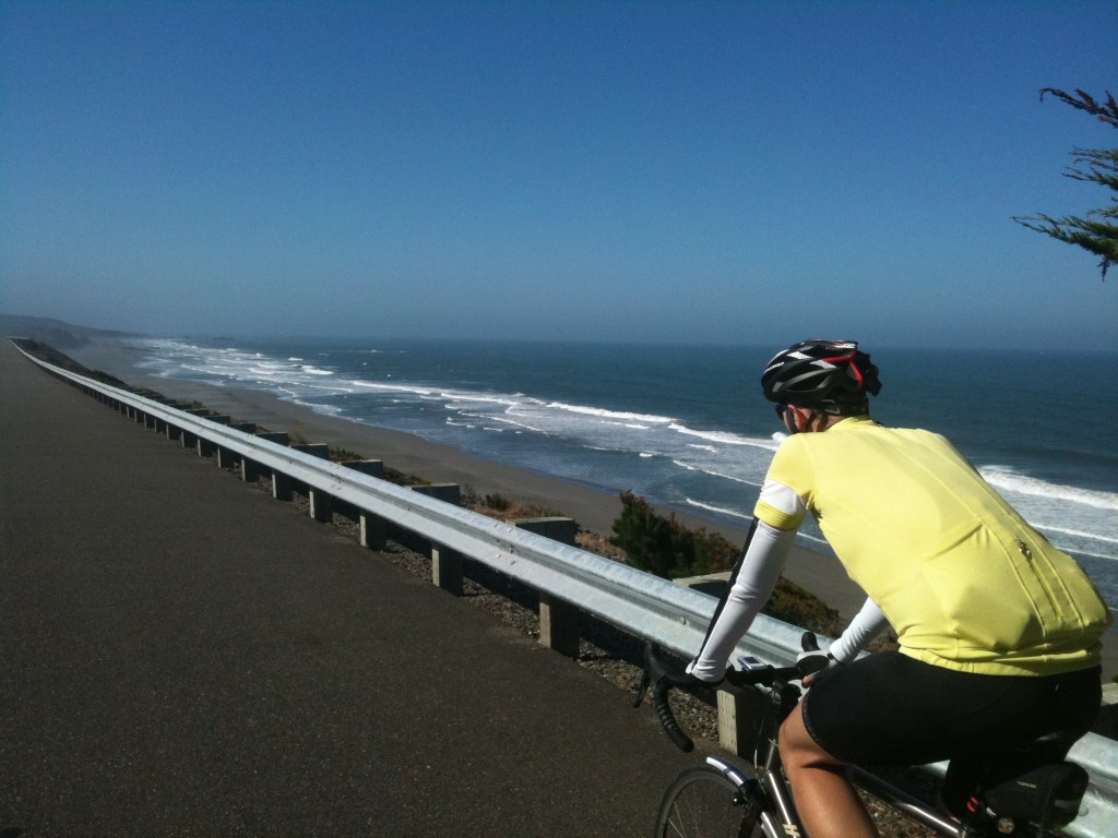 Every holiday has them – the days that don’t go to plan or the off-day. The days that you’d quite like to delete. This was one of them. Today should have been an excellent day, beginning with the final 40 miles of Oregon coast and ending with the start of the superb giant redwood forests. Although we got both, fate also intervened leading to some less favourable occurrences. First we had headwind almost all day, as any cyclist knows this saps your soul. It also holds your speed right back, (so we didn’t reach our goal of averaging 15mph today).