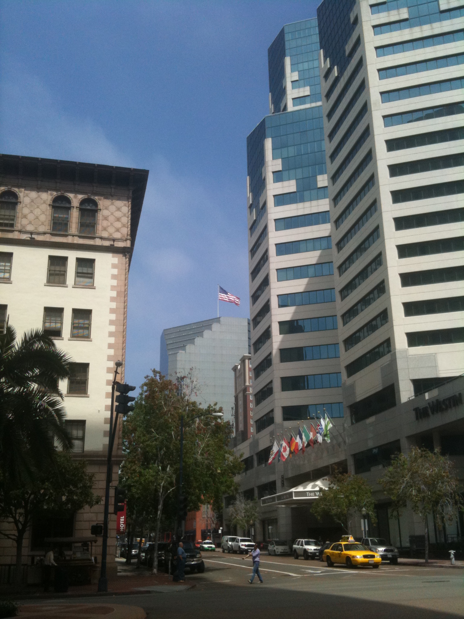 The route continued towards downtown and past an enormous Space and Naval Warfare Systems Command establishment and the airport. We’d already seen some aeroplanes taking off and coming in to land and Matthew had said: “Just think, we’ll be on one of those planes the day after tomorrow.” I don’t think that was calculated to cheer me up!
