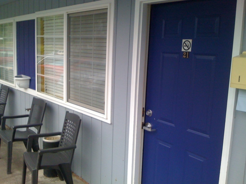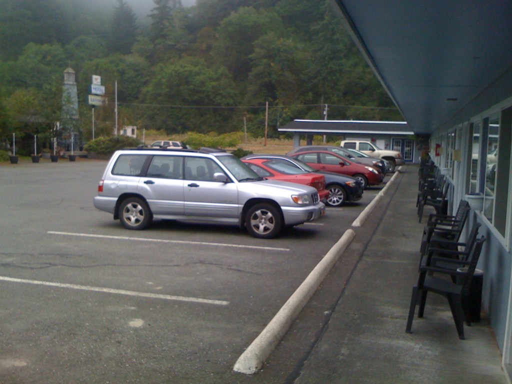 We arrived at the Ravenwood Hotel in Klamath, a bit the worse for wear. The owner came out to the reception desk with a huge blue and yellow parrot on his shoulder – a real one! Matthew had a bit of a shock and went pale … he’s not good with birds for some reason. Otherwise, the Ravenwood Hotel is lovely – with two very nice, if a little camp, gay hosts: Perry and Gary. That cheered us up a bit.