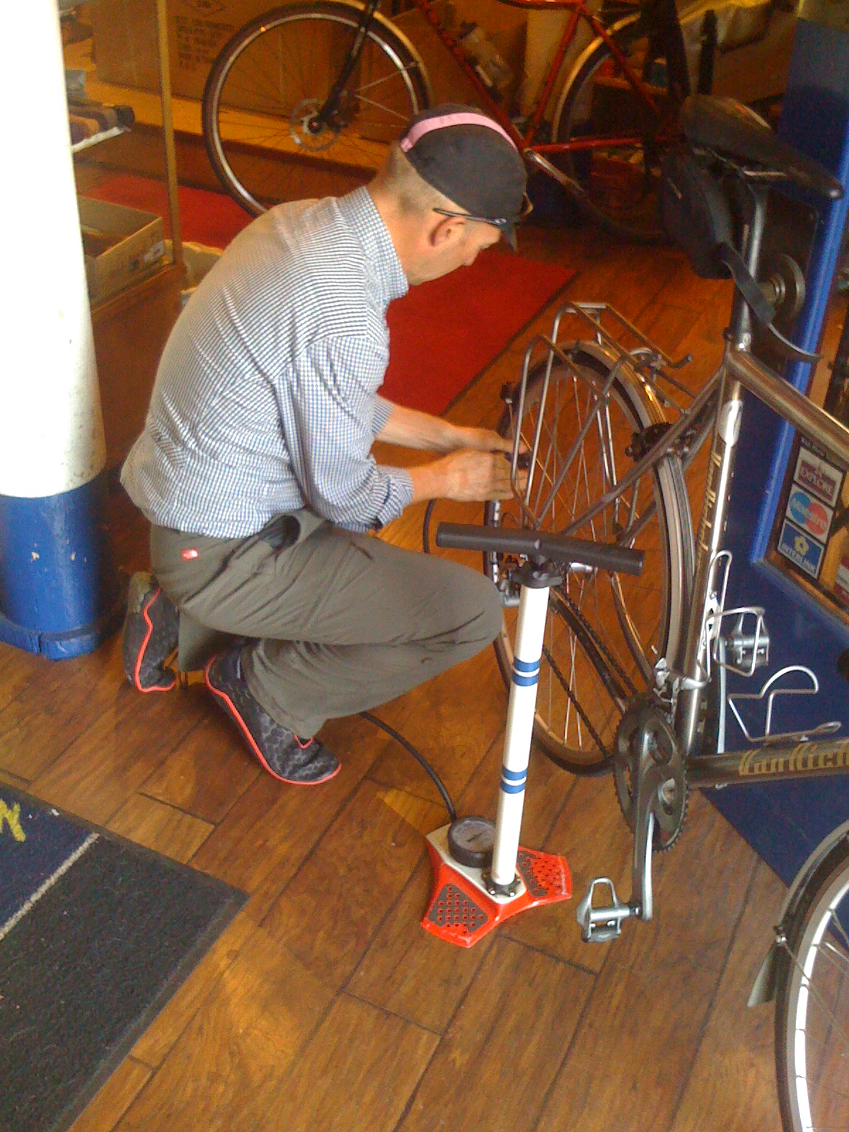 In Downtown LA ‘street hosts’ have been employed to assist tourists. They’re a brilliant idea and funded by an additional agreed levy on local business taxes. We asked one of the street hosts, Humberto Terones, for directions to a bike store. When we explained why, would you believe it? He had copies of the LA bicycle route map to give away! So we needn’t have gone all that way to Lion’s Bike Shop after all. Humberto did direct us to a lovely independent bicycle shop just around the corner, though, so we headed over there to talk about the quickest/easiest way to Seal Beach.