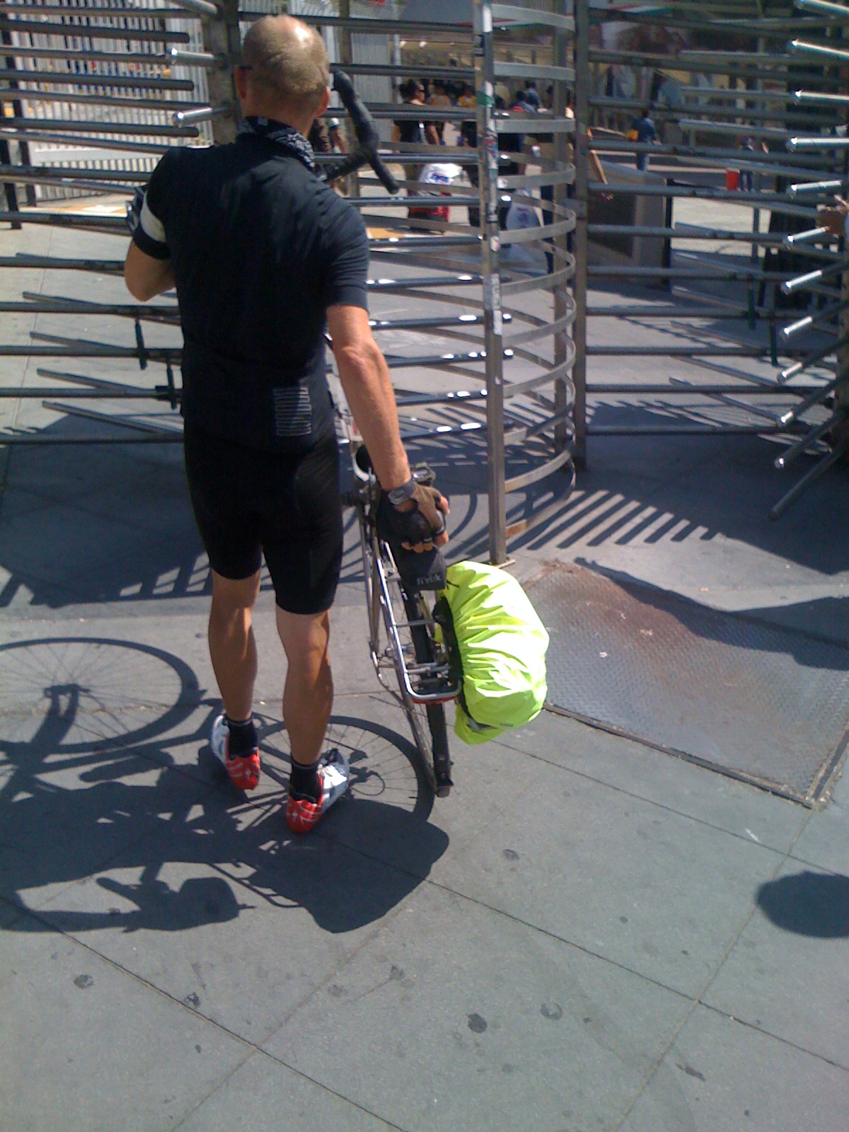 I find these bridges so scary for all the usual reasons, they’re extremely high up, but also because either the balustrades seem to be so low, (compared to those on European bridges) and because we are forced by traffic into cycling very close to the edge. It’s very easy to imagine coming off the bicycle and falling over the balustrade off the bridge, (well, I find this easy to imagine!). Roads usually narrow on bridges and either there is no sidewalk, or it’s very narrow too. This all means that there’s not much room for vehicles to pass in both directions and drivers don’t seem to slow down on the bridges. I’m reminded of what happened to poor Johnny Hoogerland and Antonia Flecha in this year’s Tour de France – a car nudged them as it tried to pass and sent them flying – Hoogerland went into barbed wire fence – it was horrible. If you want to see it for yourself, go here: