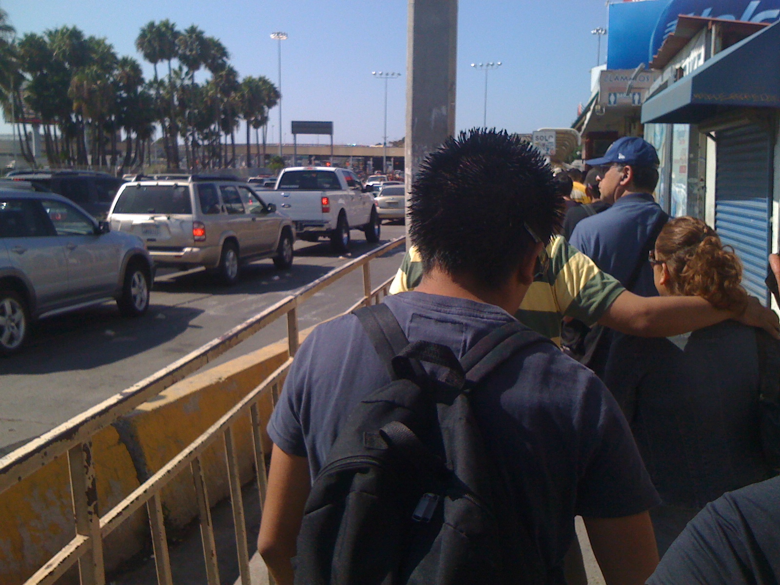 The border on the Mexican side was frankly unpleasant. Tawdry stalls and unpleasant-smelling food carts. Lots of beggars, (including some children), most with physical impairments. Buskers singing Spanish songs and playing guitars. We spent one hour and ten minutes in the queue. A young man queuing beside us, who said that he lived in Mexico and works in a restaurant by San Diego airport, told us that he crosses the border most days and that today was a fast day!