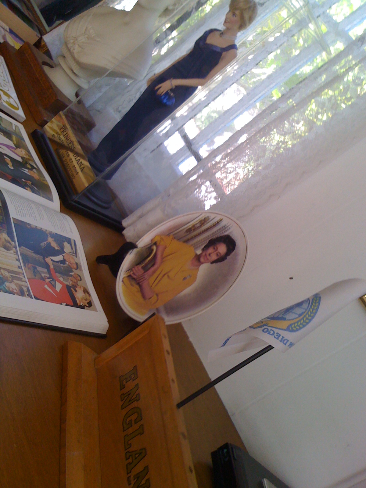 We finished out tour of the House of Pacific Relations/Cottages by visiting the England cottage. My oh my, what a vision of England we found! Almost every wall of the cottage was decorated with royal family memorabilia! Flags of Will and Kate adorned the archway, while a spooky doll of Princess Diana (Princess Barbie-Di … Darbie?!), was encased in a glass dome, along with numerous magazines with pictures of Lady Di on the cover arranged around the doll in the dome. The few exhibits that didn’t involve the royal family included a cricket bat, a picture of a pearly king and queen, a picture of a penny-farthing made from a pre-decimal penny and half-penny. There were also, perhaps inevitably, tea and some cucumber sandwiches offer. We suggested that more up-to-date additions to the cottage could include a jar of Marmite! The (fairly young) guy staffing the cottage was married to a British women, which is why he was involved in helping out there. He was quite keen to try and update the exhibit as well, suggesting they should play God Save the Queen by the Sex Pistols. I think our suggestion of a jar of Marmite is more likely to be approved by the England Cottage Society – but only just, it might still be a bit too modern!