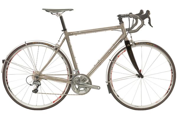 We’re therefore using titanium touring bikes. A touring frame looks rather like a racing bicycle, but it has some subtle changes – the whole bike will be slightly longer than a racing bike, (a more stretched-out riding position is more comfortable on a long ride and allows for easier shifts in position). Also the frame geometry is such that there’s sufficient space around the frame to fit mudguards. There are fixing points on the seat stays and at the drop-outs for a rear carrying rack, too. The advantage of titanium is that it saves on weight and it also makes for a very strong, yet flexible frame. Titanium is more comfortable on a long day’s ride than aluminium or carbon as it absorbs some of the uneven road surface. The strength of titanium was also a factor in helping us to decide to bring our own bikes, packed in special bags with us on the plane. We thought that they’d have a better chance of surviving intact in the baggage area and in the plane’s hold if something dropped on them. So they’re light, strong, reasonably fast and comfortable to ride all day.