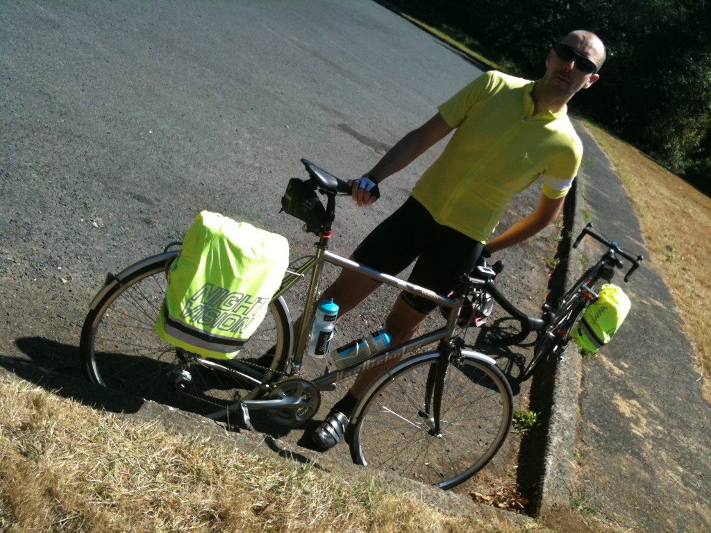 Polly’s partner Dennis has sent us a message asking about our bicycles and if we’re riding on hybrid bikes. So now seems as good a time as any to introduce you to our trusty titanium steeds: Condor and Van Nicholas. (*If you listen carefully, you’ll hear the sound of Matthew groaning*).