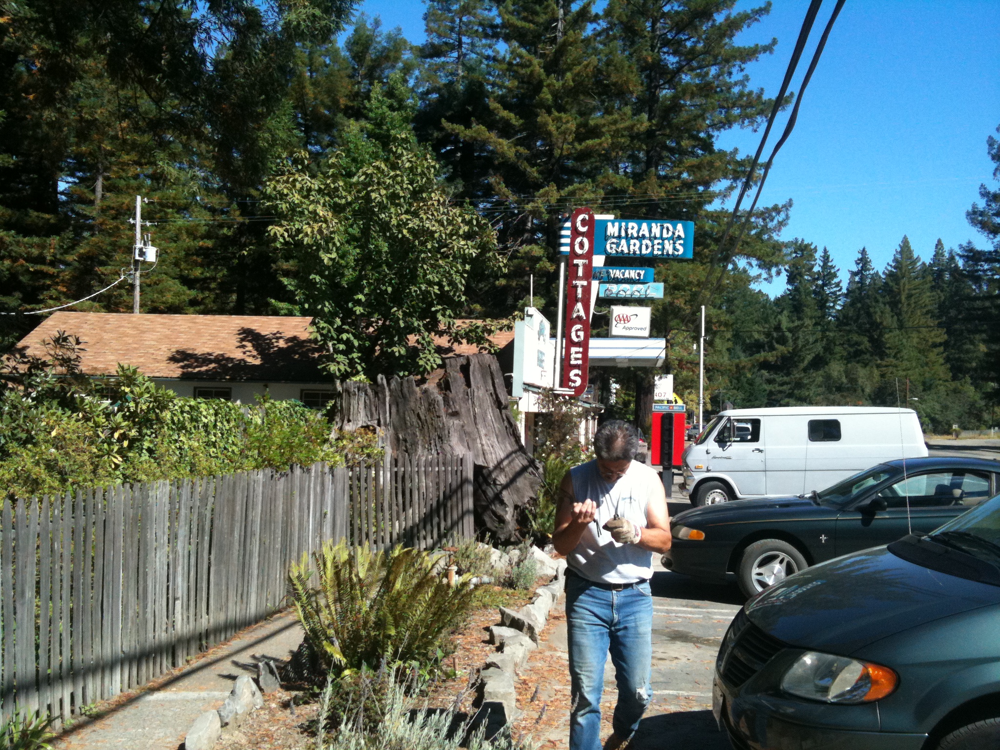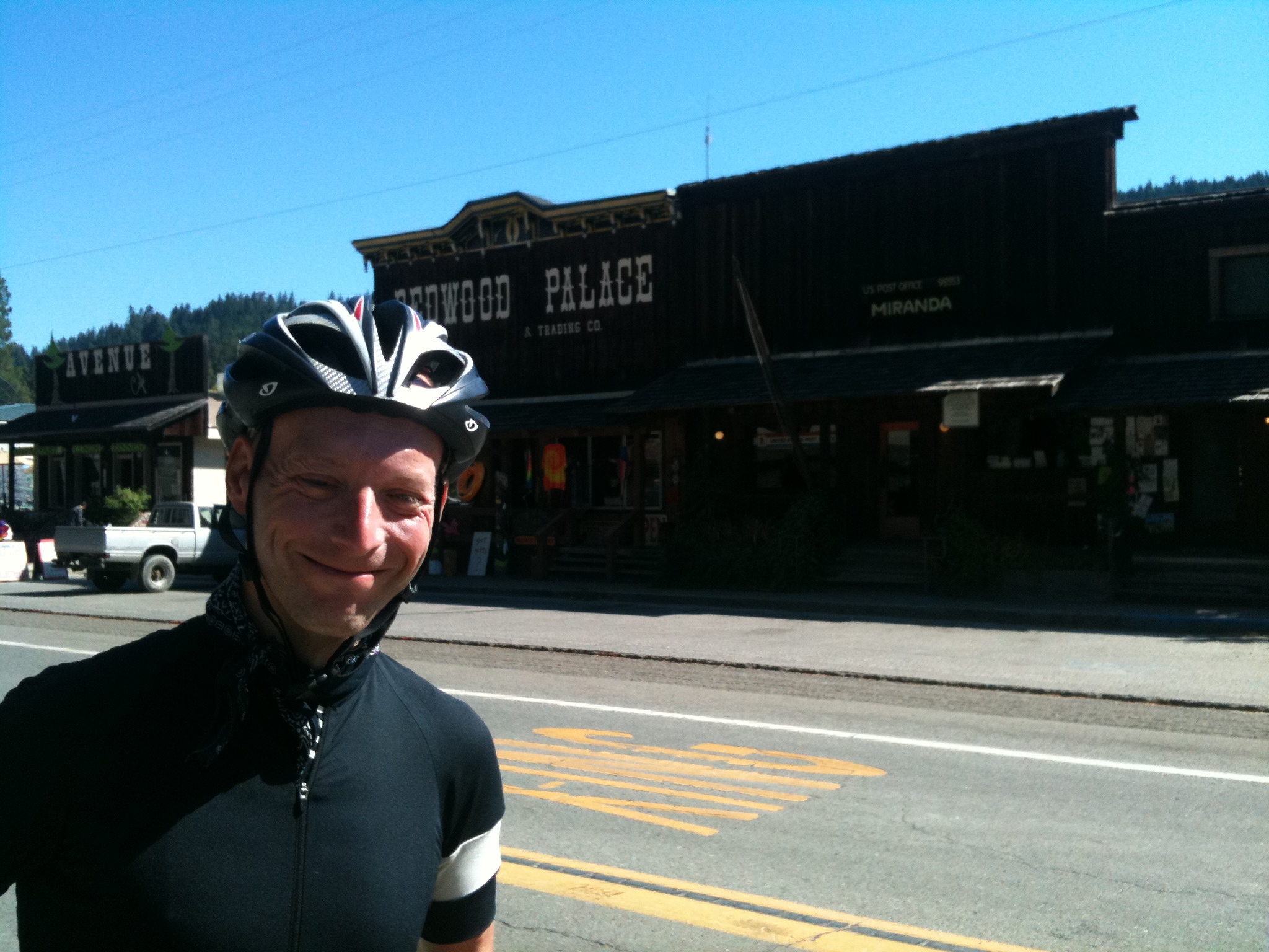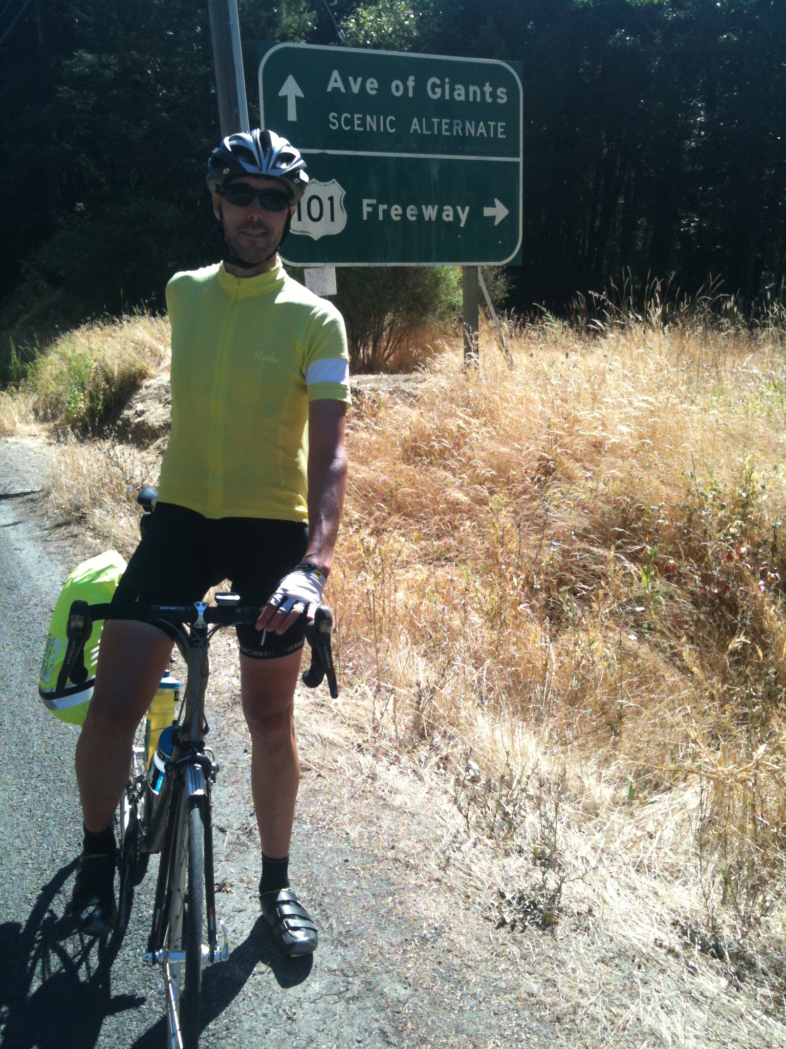 We rode past Piercy and about 5 miles from Leggett, we caught up with two other cyclists: Cleveland and John. We’ve spotted more cyclists on the road since we came into California than we’ve seen on the whole of the rest of the journey so far, (if the cyclists in the cities of Vancouver, Seattle and Portland are excluded). Cleveland and John are nos. 16 and 17! They’d been camping for the weekend … “Where’s all your camping gear?”, I asked? “Our wives have it in the ‘sag wagon’ – we’re riding along until they come and pick us up!” what a great idea! I said: “We don’t have any wives, unfortunately!” John works in insurance and Cleveland is completing a PhD in environmental business. That sound great – it’s good to meet people on bicycles like Cleveland and Christie who are working to help the environment.