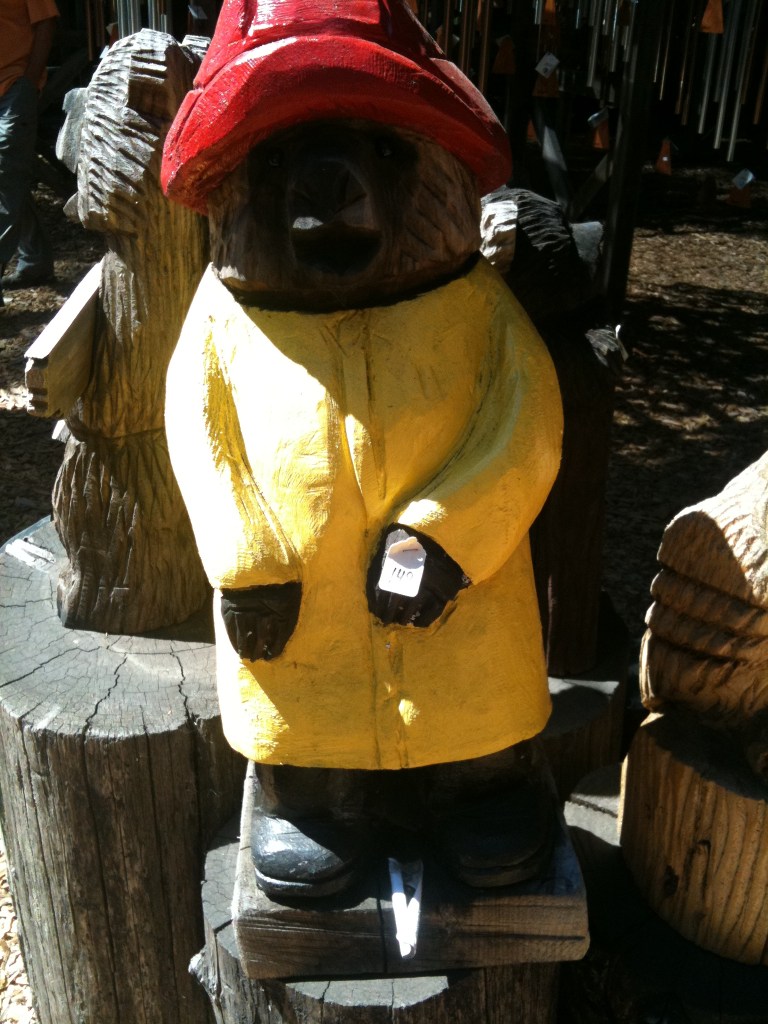 In Garberville, a rather odd souvenir store – The Legend of Bigfoot – a large wooden carving of Bigfoot dominates the entrance and the storefront is strewn with redwood carvings,including Paddington and bear friend (bear friend carrying a shotgun!).