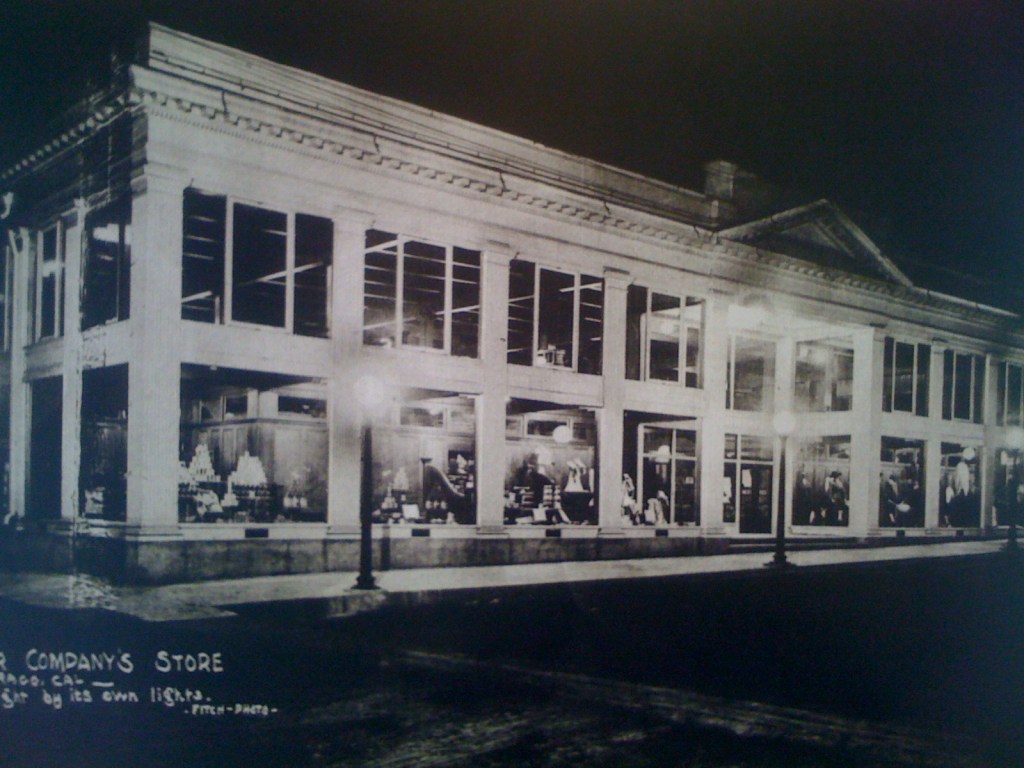 Matthew picked up a ‘Buildings to Bragg About’ leaflet – a short guide to some of the historic buildings in Fort Bragg and since there was still plenty of time before we needed to set off, we decided to take a bicycle tour of the town and check them out. Many of the older buildings along the Californian coast were destroyed in the 1907 earthquake. So most of the older buildings are from just after then. We had a look at St Michael and All Angels church-a 1902 shingle-style building with a lovely arcaded entrance to a hall on one side; an arts and crafts house and a fantastic 1938 ‘Streamline Moderne’ house – painted white with corner windows; the 1938 Cotton Auditorium built as part of the New Deal and part of secondary school buildings; the 1922 Fort Bragg City Hall, with a big US flag on the side and finally there were lots of interesting wooden shop buildings with apartments above.