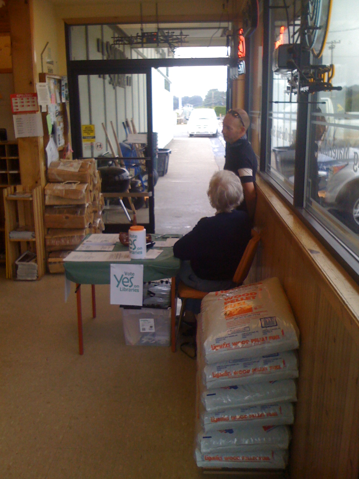 On to Manchester, where we met a delightful woman who was staffing a Save Our Libraries desk in the entrance to the general store.