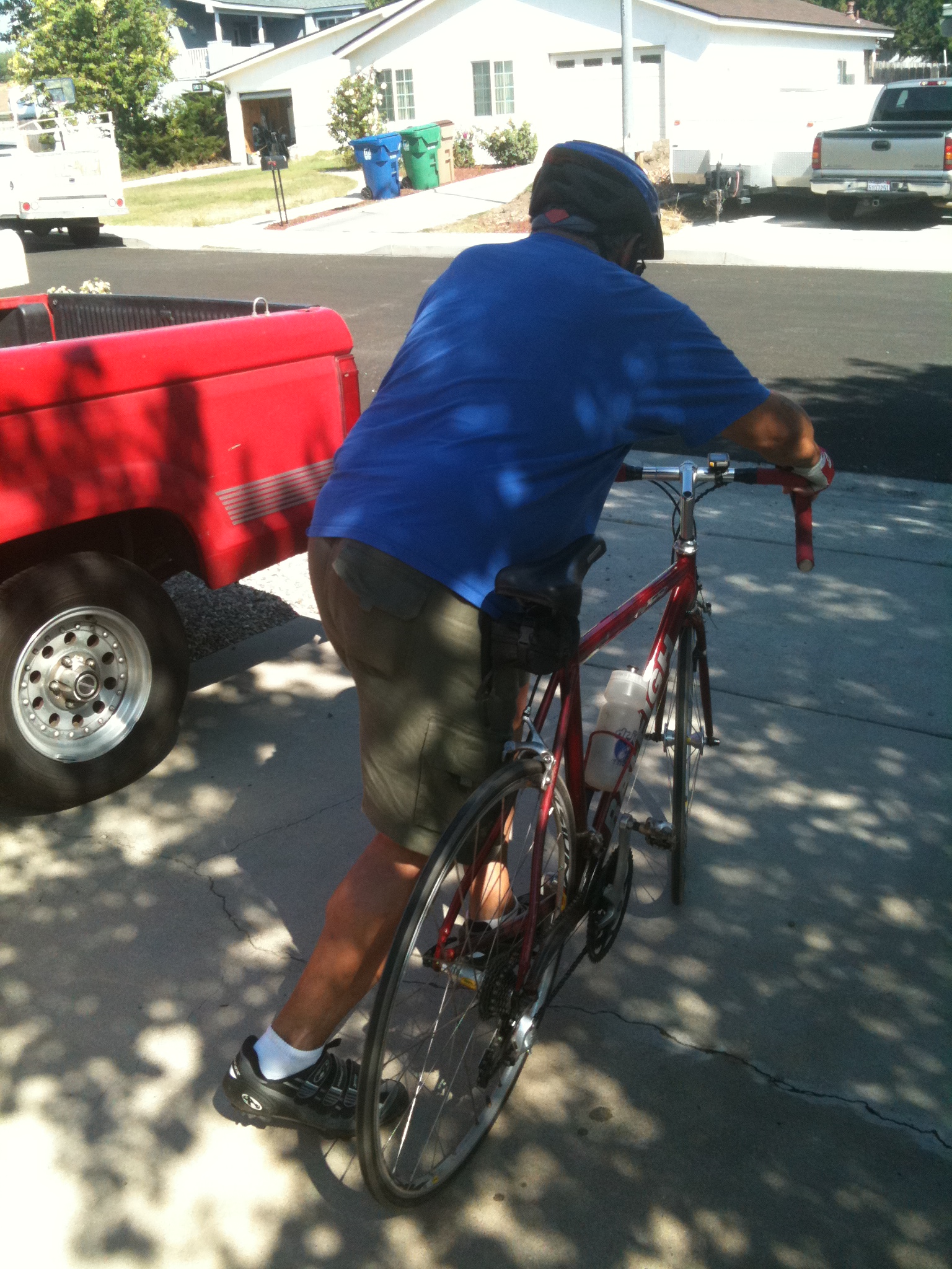 Woke up to puncture #10! (Mike, rear – not sure of cause – but a fresh hole in tube, rather than a mis-repair). The tyre had gone down overnight. I generally have a rule with inner tubes: three strikes (patches) and it’s out. So this particular inner tube was jettisoned and replaced with a new one. Then on to a good, hearty breakfast of muesli and fruit with Joe. Carol had left earlier to play golf, she’s quite an accomplished player by all accounts – well Joe’s account, actually. It was a shame to miss her this morning though – no picture of her unfortunately or any opportunity to say “thank you” again in person for our lovely dinner last night and for hosting us.