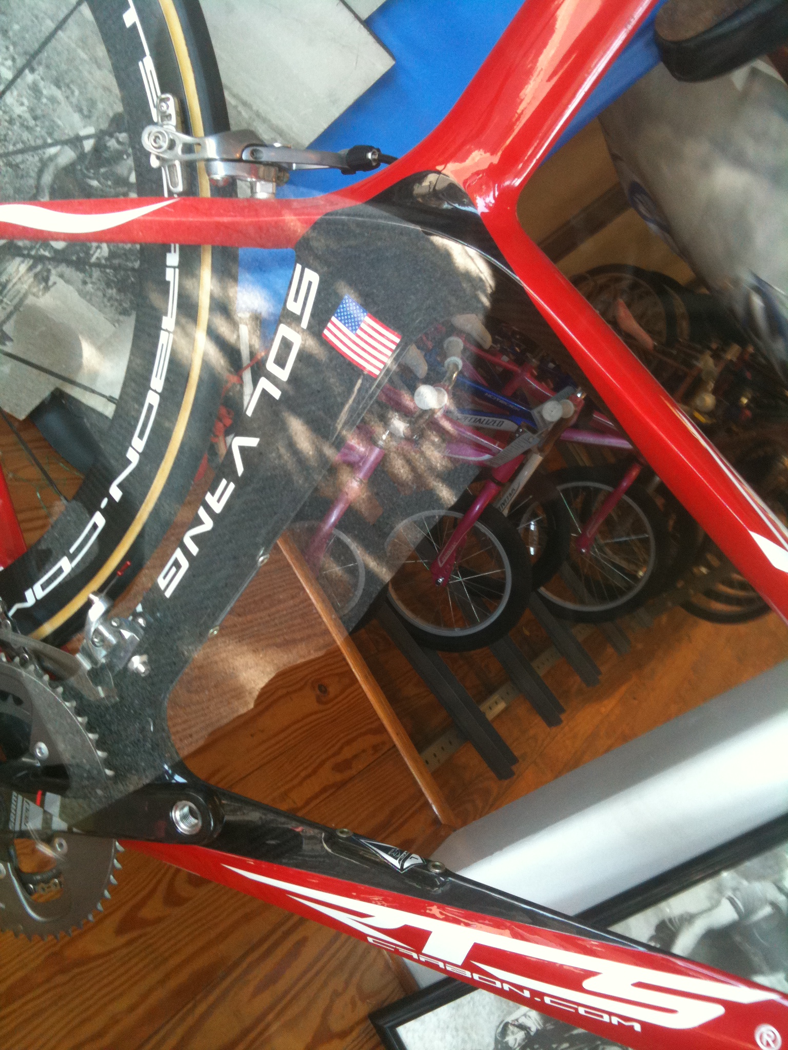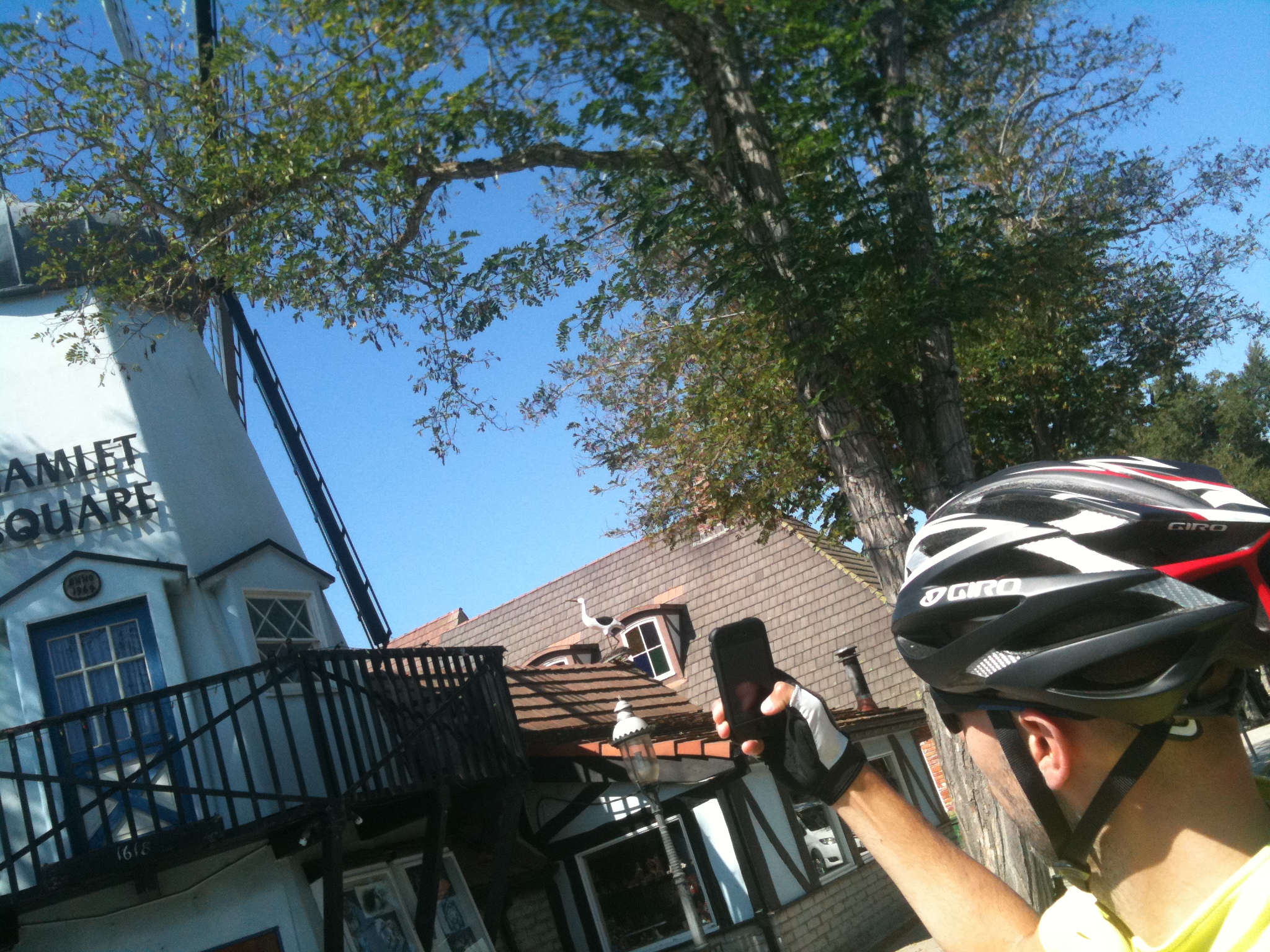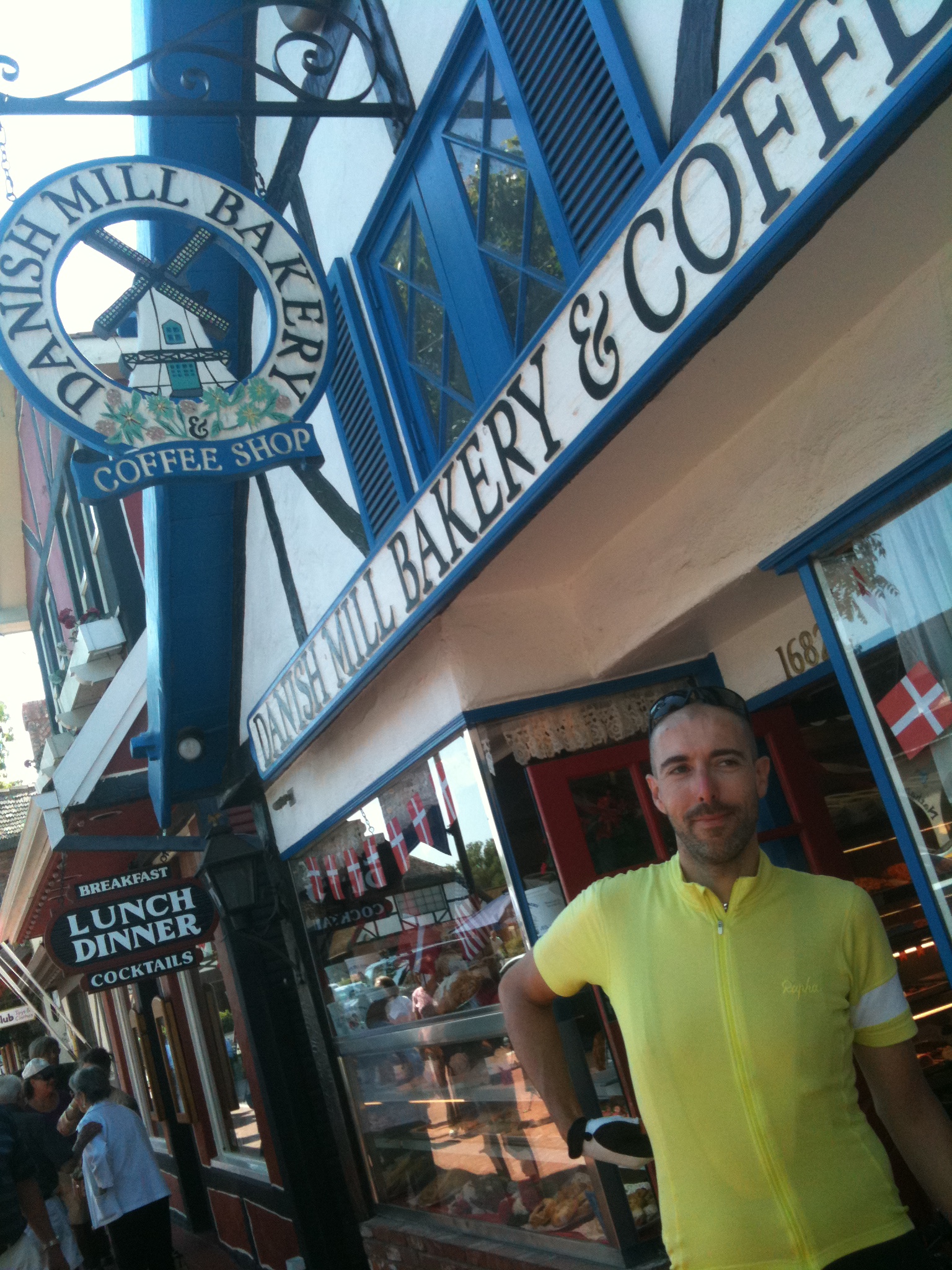 Solvang has been a host town in the Tour of California for several years now and there was a really nice cycle-friendly vibe to the place. Lots of posters in the shops and restaurants advertised the Tour of California. Many people were riding around on bicycles and the town has a really good bicycle store, where we bought a spare inner tube. The bicycle shop had window displays with pictures and souvenirs from the Tour de France – excellent stuff. The store owner was away cycling – it’s Solvang’s centenary and he was leading a group anniversary ride from San Francisco back to Solvang.