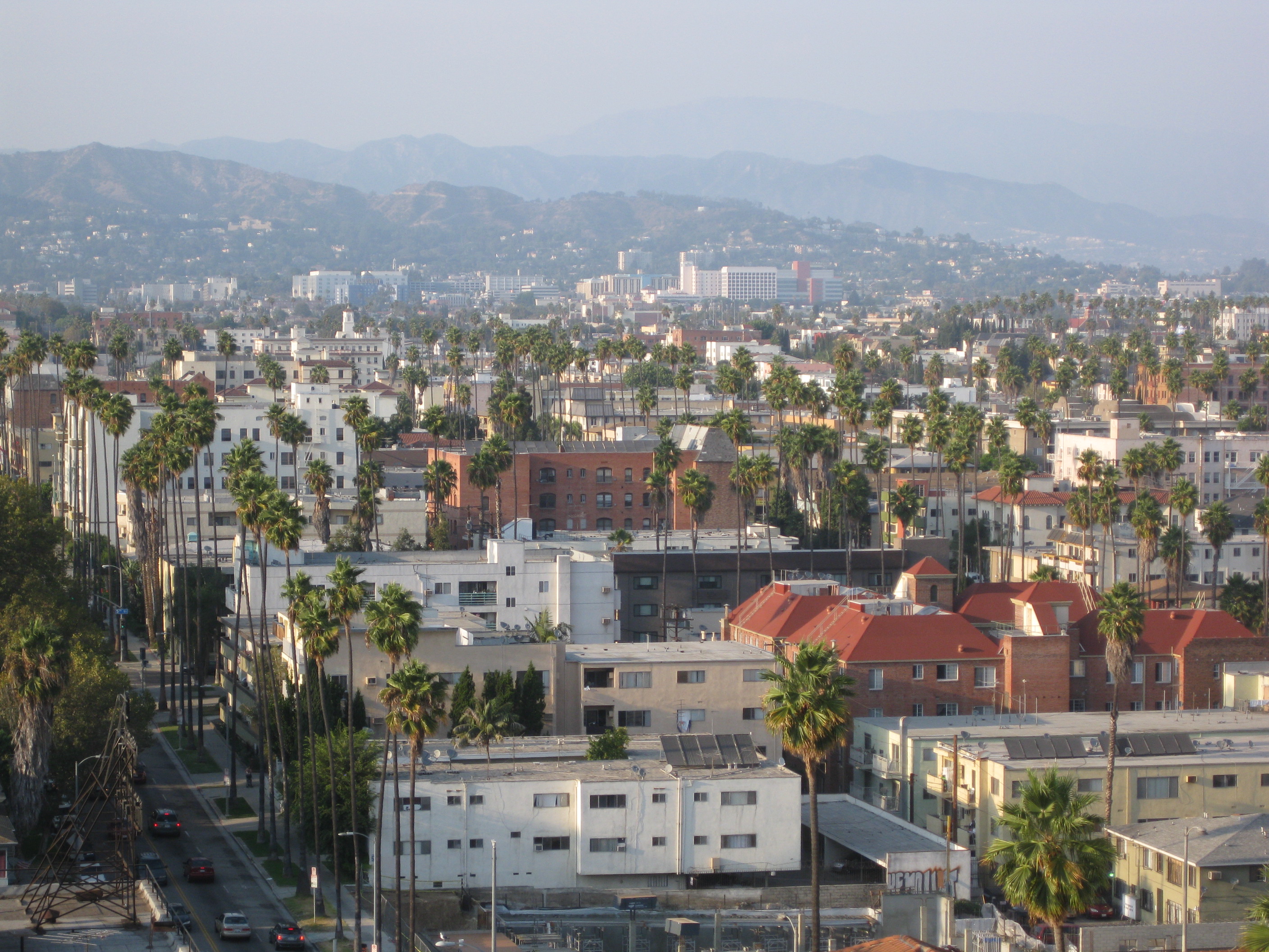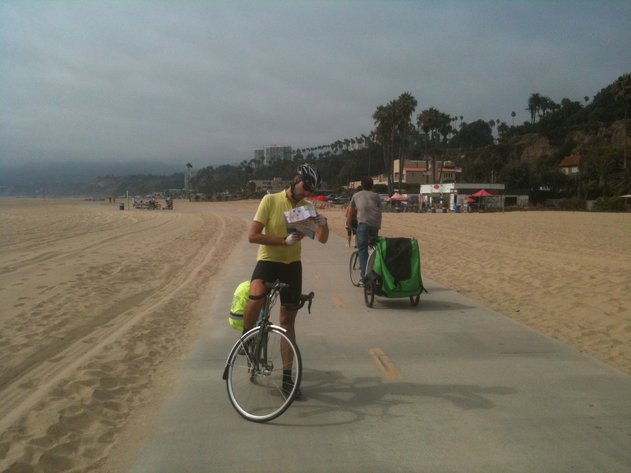 Fortunately, Matthew had picked up a map of Santa Monica at our hotel in Ventura that showed a cycle route running parallel to Wilshire Boulevard, so we proceeded along that. Unfortunately, it stopped at a T-junction after a couple of miles and we had to join Wilshire Boulevard itself.