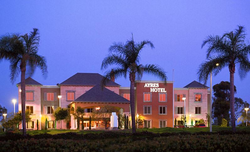 We were only about three miles from Seal Beach when the cycle path on the beach ended. There was a slightly unpleasant ride in the near dark over two busy freeway junctions to get to the Ayres’ Hotel in Seal Beach. But the hotel was such a treat, really spacious and nicely furnished. Mathew went to fetch a pizza and we ended our evening eating while listening to three episodes of the Archers. We know how to live!