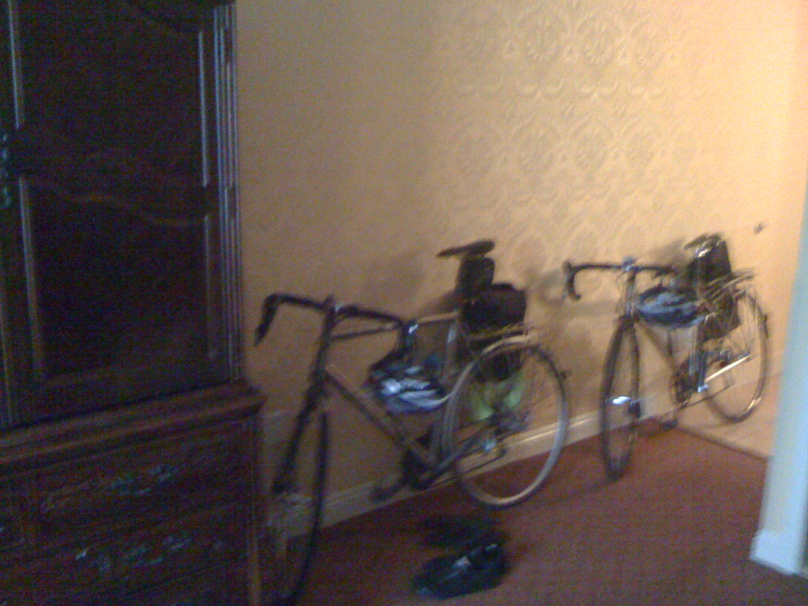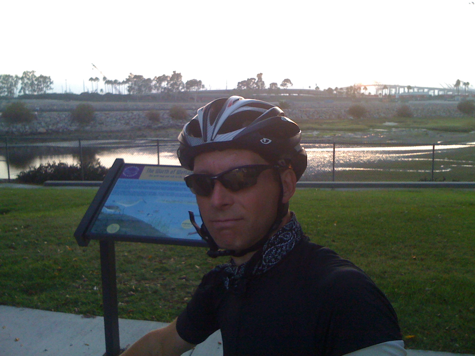 We needed to get on out way, so we took the metro from the LA civic centre back to our hotel. Before leaving earlier in the day, we’d checked out of our rooms and put out bicycles into a hotel store room. We retrieved our bicycles and cycling gear and went to the men’s ‘restroom’ to change into cycling gear. Mike first, then Matthew. While he was getting changed, Matthew ‘forgot’ to lock the cubicle door, (or so he later claimed). Picture the scene: Matthew, stark naked – apart from one sock – sitting on the toilet pan and putting on the other sock, when a man walks in on him. The man was a little bit surprised. I think that even in California, you could get arrested for hanging around nude in men’s toilets, (a smart US-style lawyer would obviously be able to argue that one sock isn’t nude).
