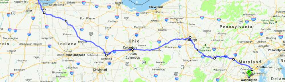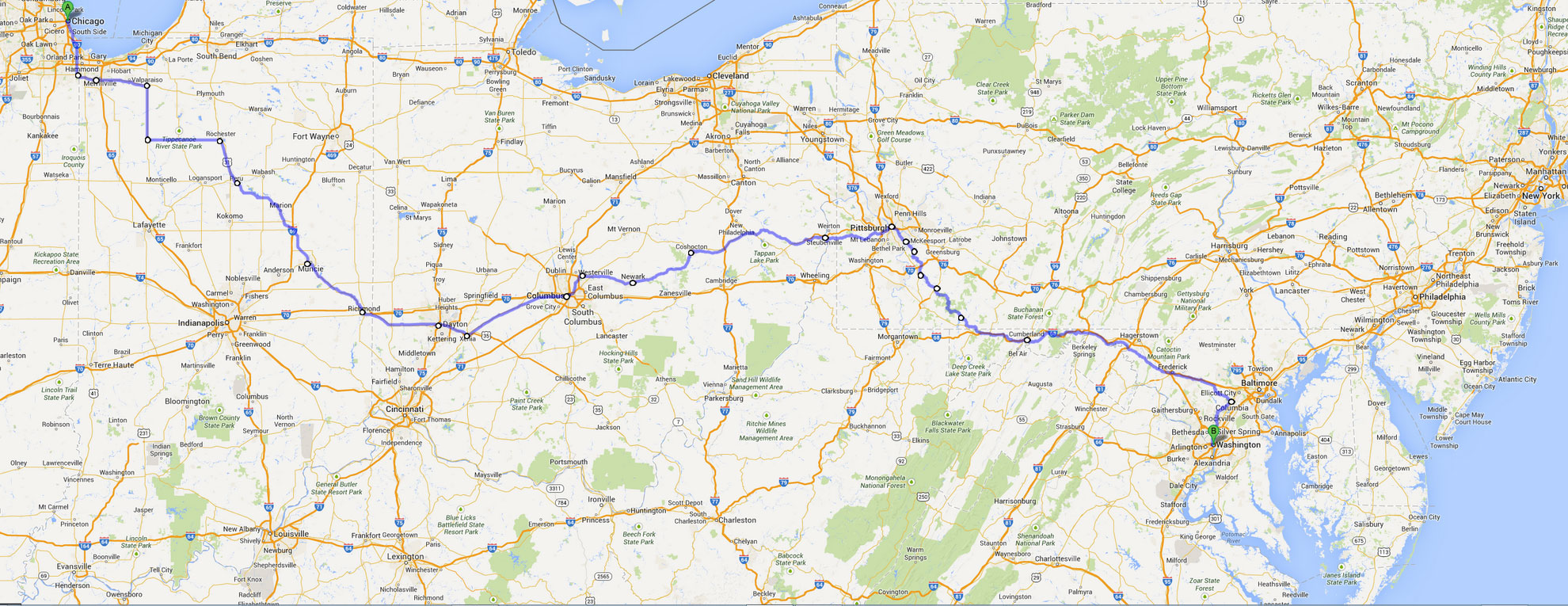 We’re expecting to cycle just under 900 miles from Chicago to Washington DC.