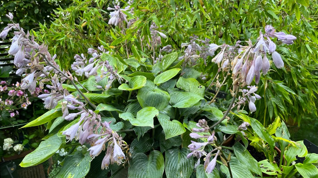 One of my other garden joys – the hostas – make a perfect, but completely accidental, supporting act for the anemone. I suspect very few people but hostas for their flowers. They’re blue/purple spires and not their stand out feature, but in the right position they come into their own. The hostas are grouped in pots on the table on the deck and the anemone reach for the sky in the raises bed behind. The accidental combination of pale mauve and candy pink make a delightful – if completely accidental – view from my kitchen. Even mistakes can turn out to be happy ones in the end.